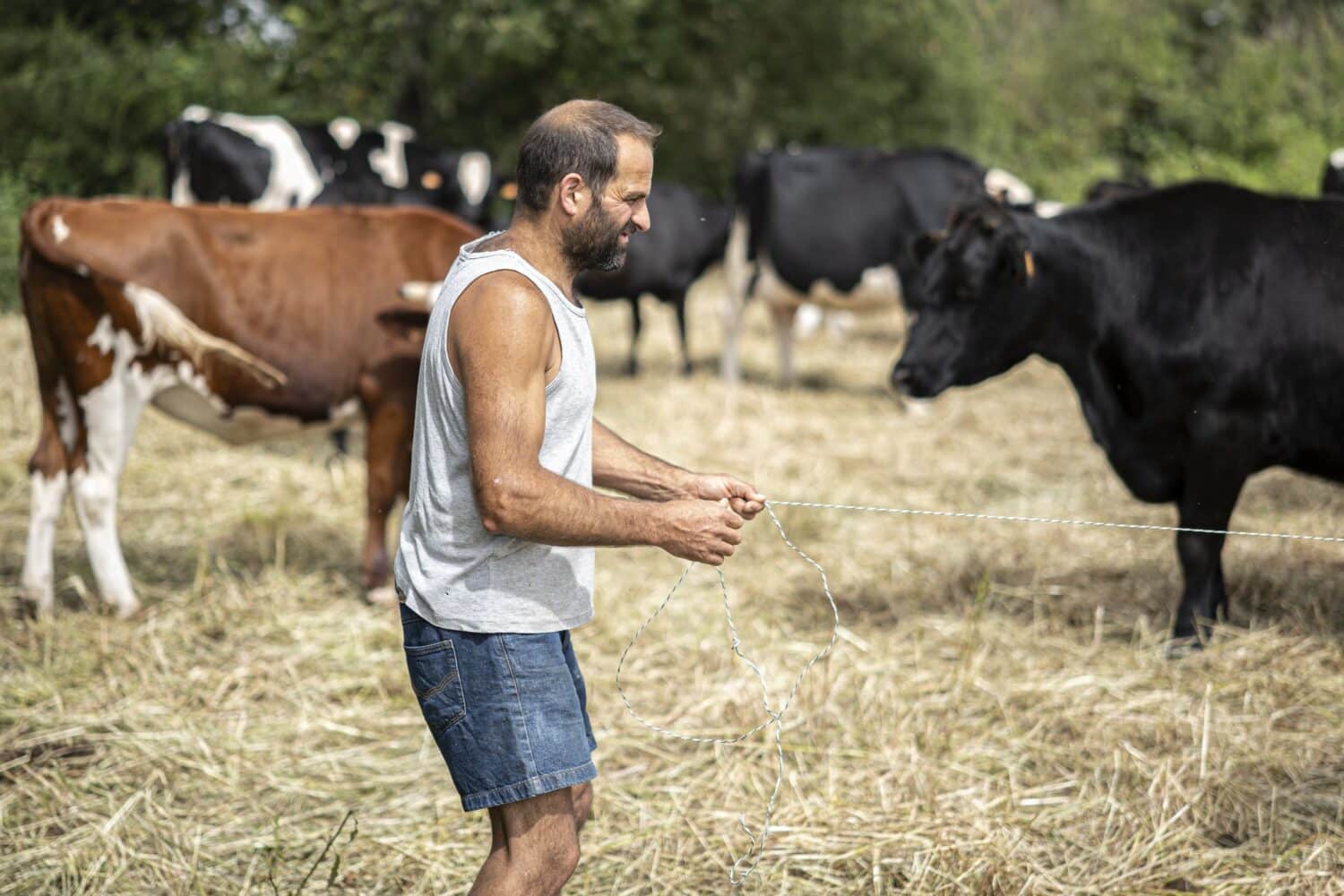 Ce mois-ci , direction le Tarn, à Cambounet-sur-Sor, entre Toulouse et Albi où Bruno Cabrol a repris la ferme familiale il y a plus d’une vingtaine d’années. Sur ses 170 hectares, il élève une cinquantaine de vaches laitières et à viande, et cultive des céréales pour nourrir son troupeau. Sous le soleil du mois de juin, Alice retrouve Bruno et son frère Cédric au cœur des travaux de la ferme : irrigation des jeunes arbres qui viennent d’être plantés, déplacement des clôtures pour assurer le pâturage des vaches. Ensemble, les deux frères travaillent main dans la main : Cédric se consacre à la recherche et à l’innovation en agroécologie, tandis que Bruno gère les cultures et l’élevage des vaches.